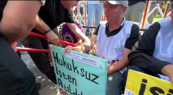 İstanbul Büyükşehir Belediyesi (İBB) önünde, işten çıkarılan işçilere destek vermek amacıyla dikkat çeken bir eylem gerçekleştirildi. Devrimci İşçi Sendikaları Konfederasyonu (DİSK) üyeleri, BELTUR şirketinin işten çıkardığı 3 çalışanın haklarını savunmak için başkanlık binası önünde toplandı. Eylemciler, “Hukuksuz işten atıldık, adalet istiyoruz” yazılı pankart açarak, “BELTUR işçisi yalnız değildir” ve “Direne direne kazanacağız” sloganları attı. Aralarında 3 işçinin de bulunduğu 7 kişi, İBB'nin önündeki demir korkuluklara kendilerini zincirle bağladı.