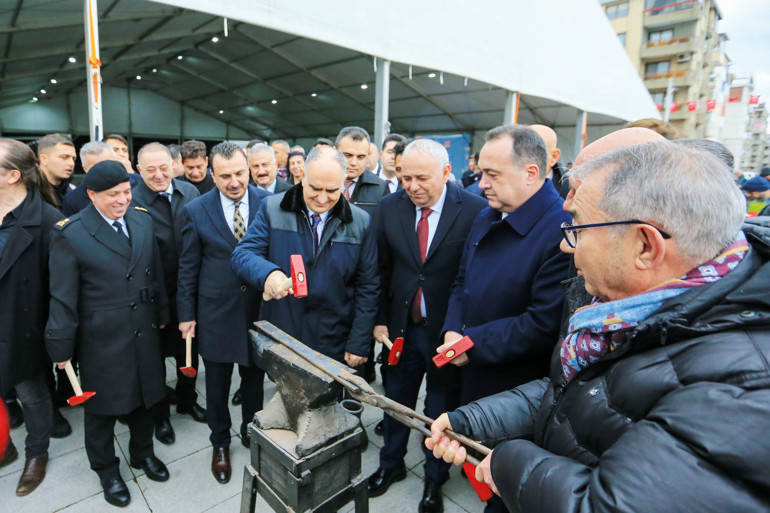 Manisa’daki kutlamalarda protokol üyeleri demir dövdü.