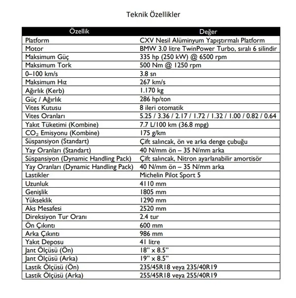 BMW iş birliği ile geliştirilen 3.0 litrelik TwinPower Turbo sıralı 6 silindirli motor, 335 beygir güç üretirken ZF 8 ileri otomatik şanzıman ile kombine ediliyor. Yeni direksiyon sistemi ve süspansiyon geometrisi sayesinde daha hızlı direksiyon tepkileri ve daha güçlü sürüş geri bildirimi elde ediliyor.