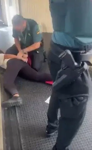 Pilot ve kabin görevlilerinin grubu uyarmasına rağmen, grup bu talebe uymayı reddetti ya da geciktirdi. Bunun üzerine uçak mürettebatı, İspanya hükümetinin polisiyle müdahale talebinde bulundu. Kısa bir süre sonra İspanyol polisi uçağa girdi ve güvenlik güçleri tüm grubu zorla uçaktan indirdi. Zorla inişin ardından grup, uçağın arka koridorunda gözaltına alındı.
