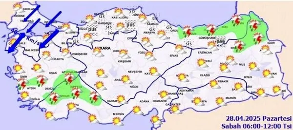 Meteoroloji, bu hafta için art arda uyarılarda bulundu. İstanbul da dahil olmak üzere valilik, 28 Nisan ve 29 Nisan tarihlerinde fırtına alarmı verdi. Hızı 80 km/saate kadar çıkacak olan fırtına için vatandaşlar uyarıldı. Yurt genelinde de benzer uyarılar yapıldı. Meteoroloji Genel Müdürlüğü’nün tahminlerine göre, ülkenin genelinin parçalı ve çok bulutlu, Ege ve Akdeniz’in iç kesimleri ile Doğu Karadeniz kıyıları ve Doğu Anadolu’nun kuzeyi ile Karaman çevrelerinde aralıklı sağanak ve gök gürültülü sağanak yağışlar beklenmektedir. Özellikle Denizli çevreleri, İzmir, Aydın ve Muğla’nın iç kesimlerinde yerel kuvvetli yağışların olması muhtemel. Rüzgarın da Marmara’da kuzey ve kuzeydoğu yönlerden kuvvetli (40-60 km/saat), güneyinde yer yer 70-80 km/saat şiddetinde esmesi bekleniyor. Karadeniz bölgesinde pus ve yer yer sis görüleceği tahmin ediliyor.