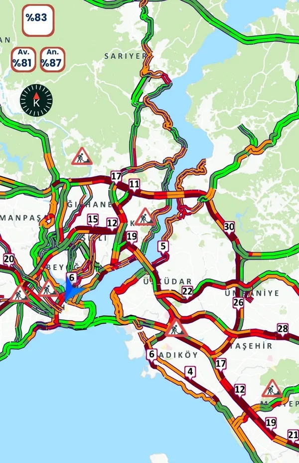 TEM Otoyolu'nda Hasdal ve Seyrantepe bölgelerindeki yoğunluk, Fatih Sultan Mehmet Köprüsü’ne kadar devam etti. Ayrıca Karaköy-Beşiktaş Meydanı arasındaki sahil yolu ve Barbaros Bulvarı'nda da trafiğin yoğun seyrettiği kaydedildi. Anadolu Yakası'nda Fatih Sultan Mehmet Köprüsü ile 15 Temmuz Şehitler Köprüsü'ne girişi olan yollarda araçlar ilerlemekte zorlandı. D-100 kara yolunda Ataşehir'den Kartal'a kadar zaman zaman yoğunluk yaşanırken, Caddebostan Sahili ile Maltepe arasında ise hafif bir yoğunluk gözlemlendi. TEM Otoyolu’nda Sancaktepe ile Sultanbeyli arasında da trafiğin yoğun olduğu tespit edildi; Şile Otoyolu, Ümraniye ile Üsküdar arasında da kısmi bir yoğunluk yaşandı.