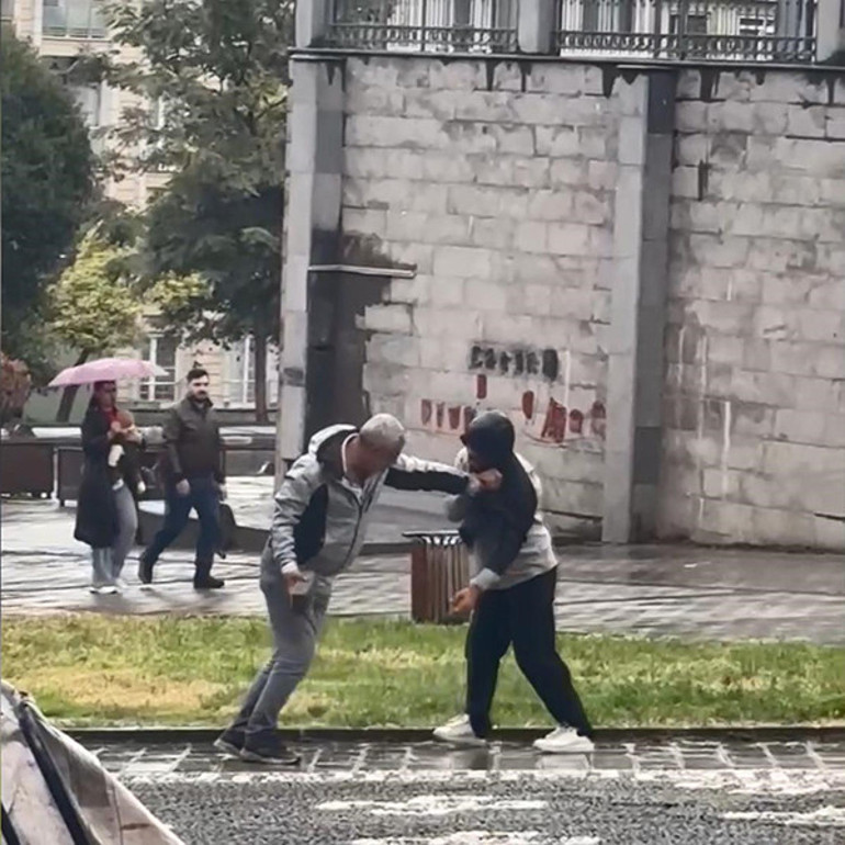 Kavga esnasında bir taraf, tartıştığı kişiyi dakikalarca yerde sürükledi. Ardından elindeki kaldırım taşıyla yerdeki kişinin bacaklarına vurdu. Bu sırada kavgayı izleyen çevredekiler, araya girerek tarafları ayırmaya çalıştı.