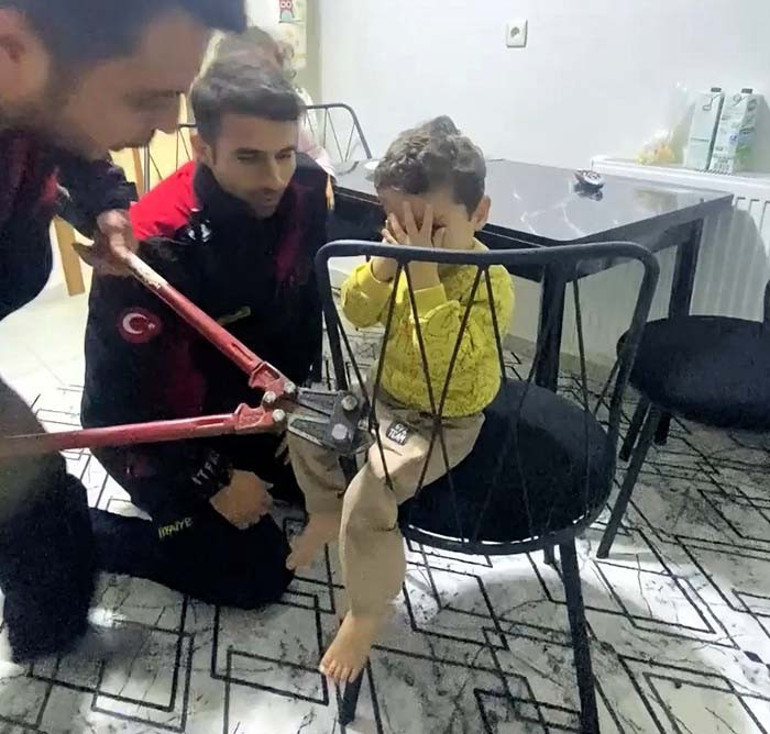Haber verilmesi üzerine harekete geçen baba Arslan, ekip arkadaşlarıyla birlikte kısa sürede olay yerine ulaştı. İtfaiye ekipleri, demir kesme makası kullanarak küçük çocuğun ayağını dikkatli bir çalışma ile kurtardı.