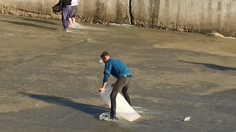 Çizmelerle Suya Girdiler: Çuval ve Kasalarla Balık Topladılar!