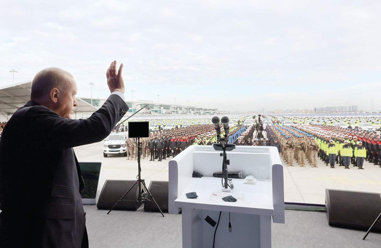 CUMHURBAŞKANI Tayyip Erdoğan, dün İstanbul Atatürk Havalimanı’nda gerçekleştirilen, ‘Jandarma, Emniyet ve Sahil Güvenlik Teşkilatı’na 9 bin 200 Yeni Aracın Hizmete Alım Töreni’nde şu ifadeleri kullandı: “Sizlerle daima gurur duyduğumuzu ve duyacağımızı bilmenizi isterim. Huzur ve güvenliğimiz için 7/24 ülkemizin dört bir yanında, vatanımızın her karış toprağında görev yapan güvenlik birimlerinde görev alan tüm kardeşlerime ülkem ve milletim adına teşekkür ediyorum.