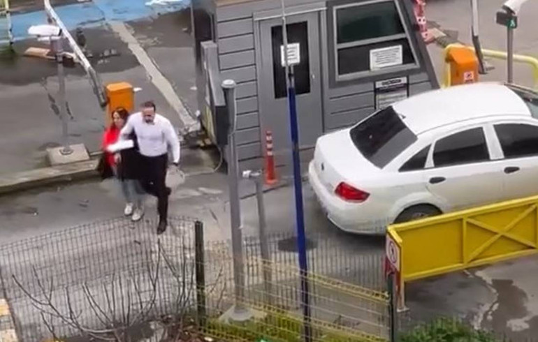 Tartışmanın ardından, otomobil sürücüsü bariyere çarparak otoparka girmeyi başardı. Olay anı çevredeki insanlar tarafından cep telefonlarıyla kaydedildi.
