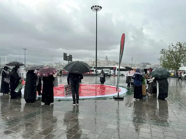 Kadınlar, İsrail’e Karşı Yağmura Rağmen Oturma Eylemini Sürdürüyor