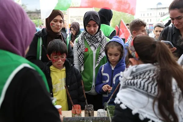 Meydanı dolduran kadınlar, Gazze’de yaşananları gösteren fotoğraflar ve Kudüs maketini sergileyerek farkındalık oluşturdular. Ayrıca, etkinlik boyunca müzik dinletisi de gerçekleştirildi.