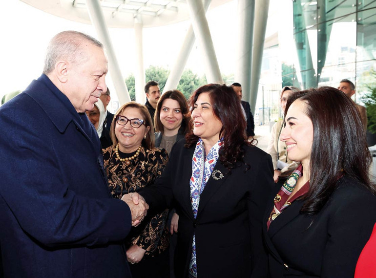 Cumhurbaşkanı Erdoğan, zirveye gelişinde Gaziantep Büyükşehir Belediye Başkanı Fatma Şahin, Aydın Büyükşehir Belediye Başkanı Özlem Çerçioğlu ve Beykoz Belediye Başkan Vekili Özlem Vural Gürzel tarafından karşılandı.