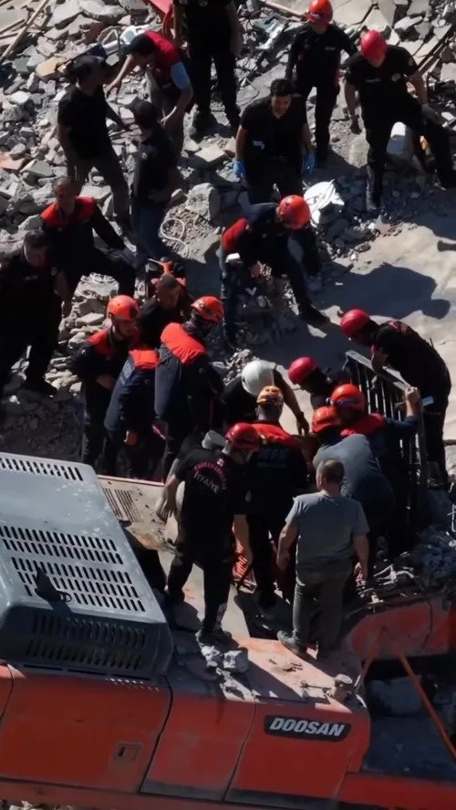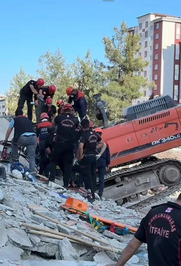 Kahramanmaraş’ın 12 Şubat ilçesinde, deprem sonrası hasar gören bir binanın yıkımı esnasında bina ani bir gürültüyle çöktü. Binanın öne doğru çökmesi sonucu iş makinesi göçüğün altında kaldı. Olay yerinde, durumun bildirilmesi üzerine AFAD ve itfaiye ekipleri hızla müdahale etti.