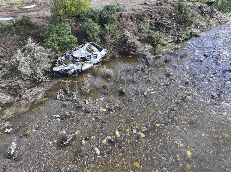 Bu arada, yapılan çalışmalar sırasında bulunan ve kullanılmaz hale geldiği tespit edilen Bülent Kaptanoğlu’nun otomobili, dron ile görüntülendi.