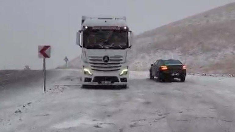 Karayolları ekipleri, yolların güvenliğini sağlamak için kar küreme ve tuzlama çalışmaları gerçekleştirdi. Yapılan mücadele çalışmalarının ardından ağır tonajlı araçlar yollarına devam edebildi.