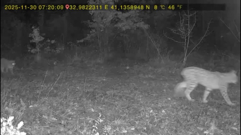 Bölgedeki yaban hayvanlarını görüntülemeyi başaran Işık’ın yerleştirdiği fotokapanlara son olarak ormanda dolaşan nesli tükenme tehlikesi altında bulunan vaşak ve kurtun görüntüleri yansıdı.