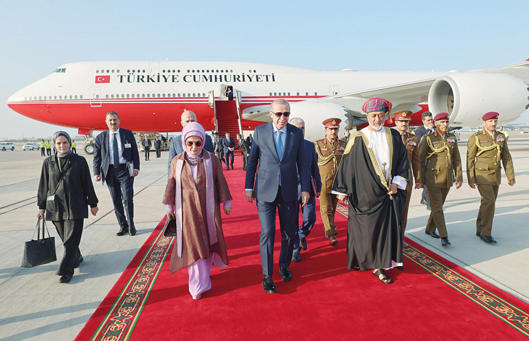– Cumhurbaşkanı Tayyip Erdoğan, Katar’daki temaslarını tamamladıktan sonra Körfez turunun son ülkesi Umman’ın başkenti Maskat’a geçti. Erdoğan, Özel Sultanlık Havaalanı’nda, Umman Sultanı Heysem bin Tarık ve Türkiye’nin Maskat Büyükelçisi Muhammet Hekimoğlu ve elçilik personeli tarafından karşılandı. Umman Hava Kuvvetleri’ne ait uçaklar, Özel Sultanlık Havaalanı’na inişinde Cumhurbaşkanı Erdoğan’ın uçağına eşlik etti.