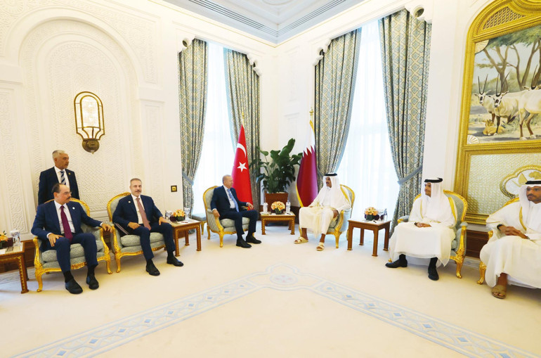 Cumhurbaşkanı Tayyip Erdoğan’ın Katar Emiri’yle görüşmesine katılan heyette Dışişleri Bakanı Hakan Fidan ve MİT Başkanı İbrahim Kalın da yer aldı.