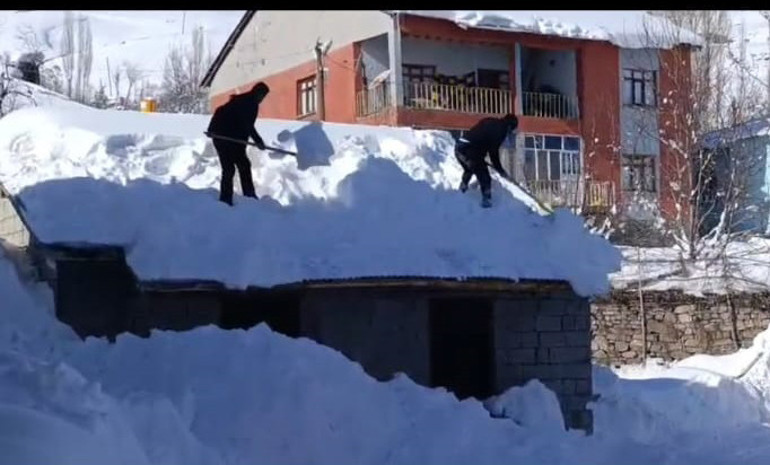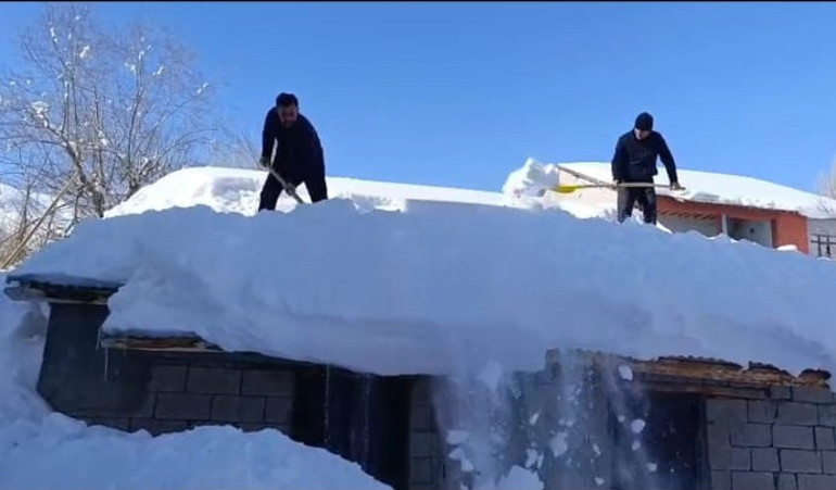 2 bin 44 rakımlı köyde yaşayanlar, evlerinin çatılarındaki biriken karları yardımlaşarak temizlemeye gayret gösteriyorlar.