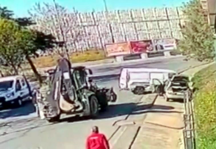 Olay, Silivri Mimar Sinan Mahallesi'ndeki bir alışveriş merkezi karşısındaki boş alanda meydana geldi. Seyir halindeki kepçe sürücüsü kontrolünden çıkarak park halindeki iki araca çarptı. Kepçe, araçları yaklaşık 60 metre sürükledi.