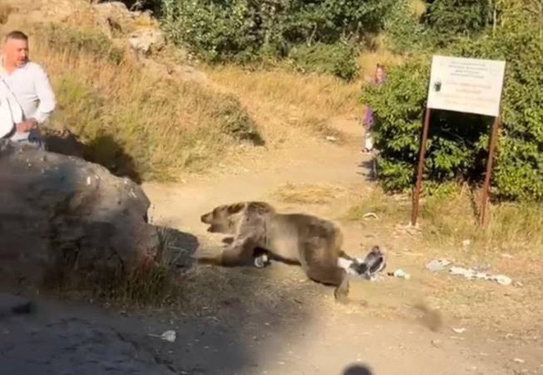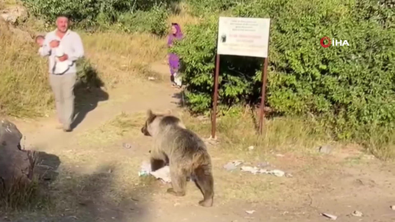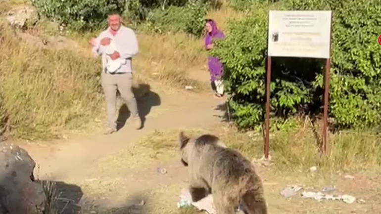 Bitlis'in Tatvan ilçesinde bulunan Nemrut Krater Gölü'nde geziye çıkan bir aile, talihsiz bir olayla karşılaştı. Kucağında bebek bulunan bir vatandaşa ayı saldırdı. Saldırı anı, cep telefonuyla kaydedildi.