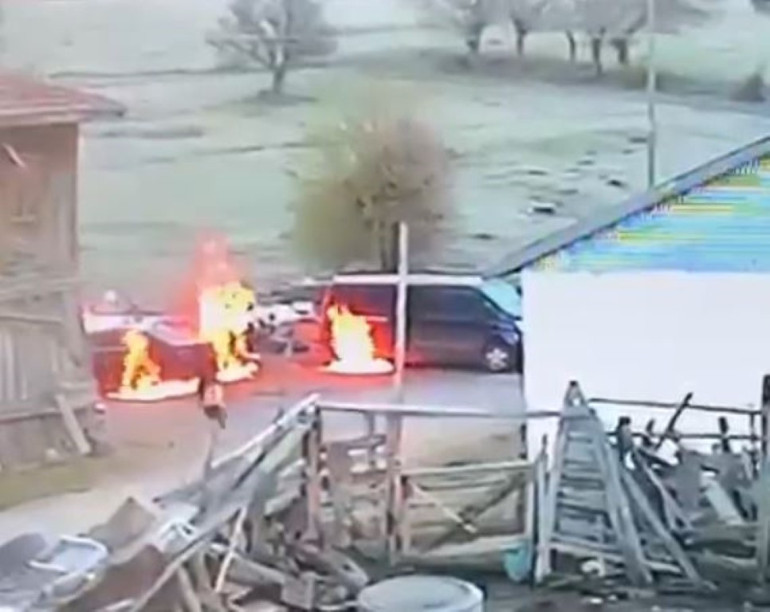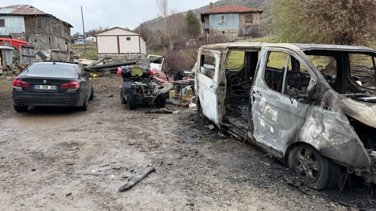 Çukurören Mahallesi Muhtarı Hasan Sağlam ve oğlu Ali Osman Sağlam'a ait olan ATV, minibüs, otomobil ve kamyonet, dün sabah saatlerinde evlerinin önünde park edilmişken, 3 kişi tarafından benzin dökülerek ateşe verildi.