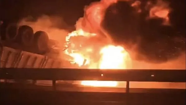 Kaza, saat 20.30 sıralarında Mardin'in Nusaybin ilçesine bağlı Odabaşı Mahallesi'nde gerçekleşti. Mustafa Çiftçi kontrolündeki plakası belirsiz TIR, şoförünün direksiyon hakimiyetini kaybetmesi sonucu devrildi ve motor kısmı alev aldı.