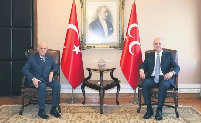 Meclis Başkanı Numan Kurtulmuş, MHP lideri Devlet Bahçeli’yi Türkiye Büyük Millet Meclisi’ndeki (TBMM) parti grubunda ziyaret etti. Yaklaşık yarım saat süren görüşmenin ardından basın mensuplarına açıklamalarda bulunan Kurtulmuş, Bahçeli’nin terörsüz bir Türkiye’nin inşasında tarihi katkılar sağladığını ve öncülük ettiğini ifade etti.