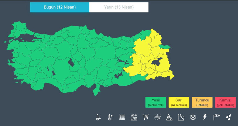DOĞU VE GÜNEYDOĞU ANADOLU BÖLGESİ İÇİN SARI KODLU ALARM