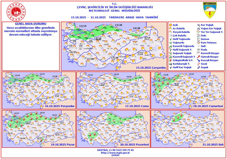 Meteoroloji Genel Müdürlüğü, 15-21 Ekim tarihlerini kapsayan hava durumu tahmin raporunu yayımladı. Rapora göre, bugün İstanbul dahil birçok ilde sağanak yağış bekleniyor.
