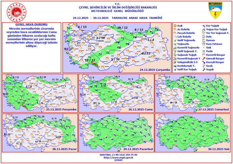 İŞTE 24 ARALIK ÇARŞAMBA BÖLGE BÖLGE HAVA DURUMU