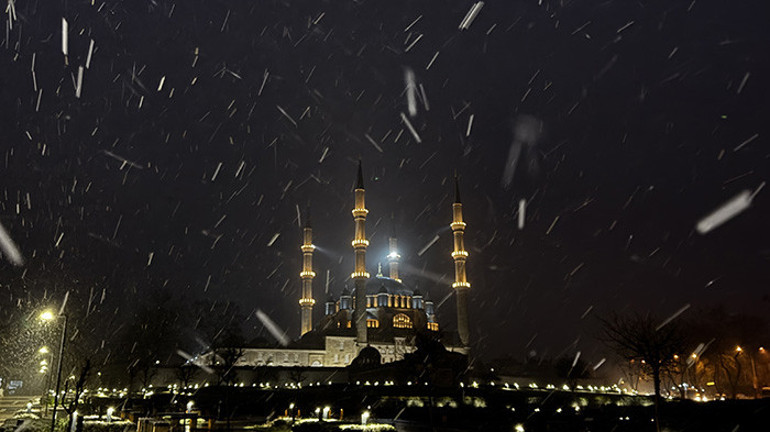 Edirne'de dün akşam saatlerinden itibaren başlayan sağanak, sabah saatlerinde kar yağışına dönüştü. Kentte gece boyunca süren yağış, hava sıcaklığının sıfırın altında 1 dereceye inmesi ile kar şeklinde görüldü. Yollar şu an için ıslak olduğundan kar zemin üzerinde tutunmuyor, fakat kısa sürede araçların ve bitkilerin üzerinin beyaza bürüneceği tahmin ediliyor. Kar yağışının öğle saatlerine kadar aralıklarla devam etmesi bekleniyor.
