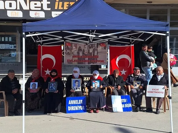 Muş'ta terör örgütü PKK tarafından çocukları kaçırılan aileler, DEM Parti İl Başkanlığı önündeki eylemlerine devam ediyor. Eylemciler, elinde evlatlarının fotoğraflarıyla teslim olmaları için çağrı yaptı. Anne Ayten Koçhan, 10 yıldır oğlundan haber alamadığını ifade etti.