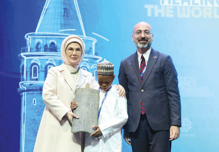 Bu zor süreçte eğitimine devam etmeye çalışırken, Türk Maarif Okulu ile yolları kesişti. 2021-2022 eğitim-öğretim yılında, Türkiye Maarif Vakfı’nın Nijer Temsilciliği ve Nijer-Türk Dostluk Okulları, Raşit’e ilkokuldan liseye kadar tüm eğitim sürecinde burs tanıdı. Bunun yanında, kendisine yasal vasisi olan ağabeyi de Nijer-Türk Dostluk Okulları’nda bahçıvan olarak işe alındı. İstanbul Atatürk Kültür Merkezi, önceki gün önemli bir misafiri ağırladı. Cumhurbaşkanı Tayyip Erdoğan’ın eşi Emine Erdoğan ile Suriye Cumhurbaşkanı Ahmet Şara’nın eşi Latife El Durubi’nin katıldığı 5. İstanbul Eğitim Zirvesi’nde, çatışmalara rağmen eğitim hayatına devam eden çocukların dramını anlatan görüntüler dev ekranlarda yayınlandı. Arkadaşlarının yangın sırasında hayatını kaybetmesine tanıklık eden ve yanıklarıyla hayatta kalan Raşit’in hikayesi zirveye damgasını vurdu. Genç yaşta yaşadığı zorluklarla olgunlaşan Raşit, sahneye elindeki bir tahta parçası olan ‘Luh’ ile çıktı. Yangın sırasında kurtarıp yanından ayırmadığı bu ‘Luh’u, sahnede Emine Erdoğan’a armağan etti. Erdoğan da ona sıkı sıkı sarılarak teşekkür etti.