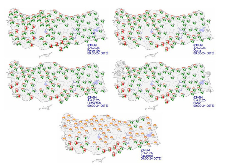 Meteoroloji Genel Müdürlüğü tarafından yapılan son değerlendirmelere göre, yurt genelinde etkili olan bahar havası yerini sağanak yağışa ve fırtınaya bırakıyor. Yayımlanan yeni haritaya göre, öğle saatlerinden itibaren kuvvetli yağış ve rüzgar etkili olacak. Yağışların hafta sonuna kadar devam etmesi beklenirken, yeni haftada sıcaklıkların artacağı öngörülüyor.