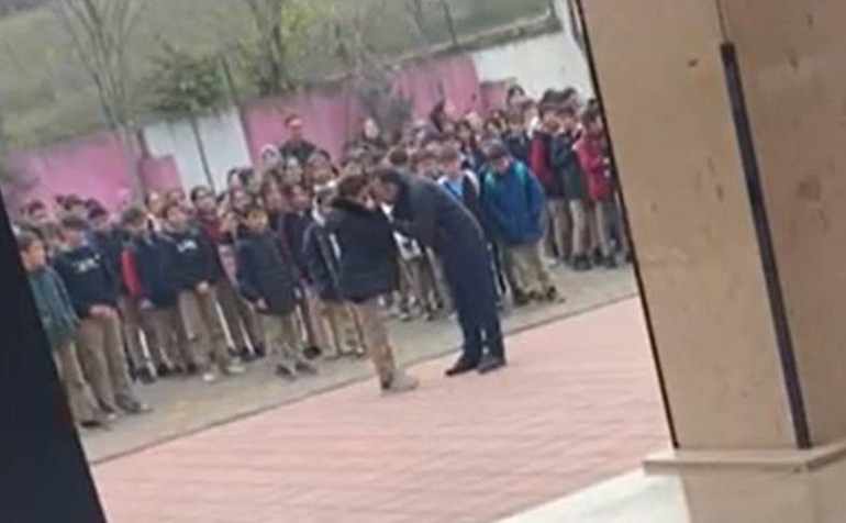 Olay, 12 Aralık’ta Ömer Osman Çağlayan Ortaokulu’nda gerçekleşti. Öğrenciler bayrak töreni için sırada beklerken, okul müdürü Mustafa Ç., Muhammed K. (11) isimli öğrenciyi, iddialara göre sıra düzenini bozduğu gerekçesiyle yanına çağırdı.