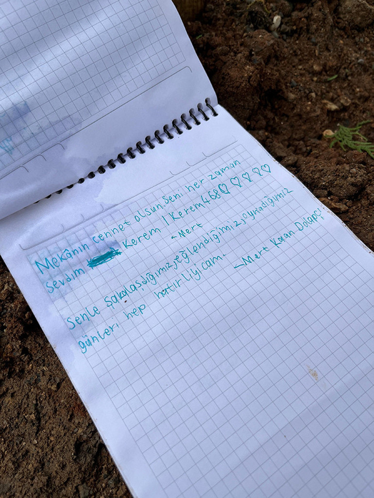 Bir başka notu ise Kahramanmaraş merkezli 6 Şubat 2023 depremlerinde kızını kaybeden bir anne bıraktı. Notta, “Depremde 4 yaşında kızım Nehir’imi kaybettim. Ona selam söyleyin ona sarılın” ifadeleri yer aldı.