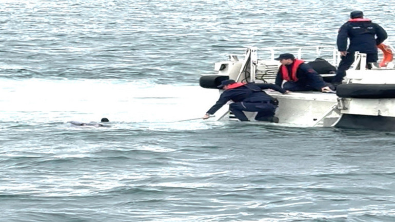 Kaptan, su üzerindeki kişinin ellerinin hareket ettiğini fark edince, “Hey, canlı mısın, yaşıyor musun?” diye seslendi. Ancak yanıt alamayınca, hemen Sahil Güvenlik Komutanlığı’na bildirimde bulundu.