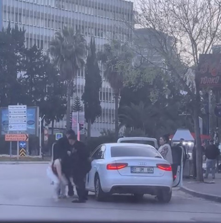 Olay, dün akşam saatlerinde Çukurova ilçesi Beyazevler Mahallesi’ndeki kavşakta meydana geldi. Kimliği belirlenemeyen 2 kişi, 01 UM 864 plakalı otomobildeki tartıştıkları kadını tartaklayıp, araçtan indirdi ve yere itti. Kadın da tartıştığı kişilere vurup, daha sonra otomobilin aynasını kırdı. Şüpheliler kadını bırakarak, otomobile binip bölgeden ayrıldı.
