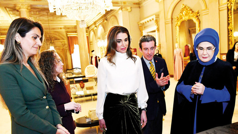 Cumhurbaşkanı Tayyip Erdoğan’ın eşi Emine Erdoğan, Ürdün Kraliçesi Rania el Abdullah’ı Dolmabahçe Sarayı’nda ağırladı. Emine Erdoğan, ardından el Abdullah ile Olgunlaşma Enstitüsü’nün düzenlediği ‘Tabiatın Ahenginden Kültürel Hafızaya: Nakş-ı Zaman Sergisi’ni ziyaret etti.
