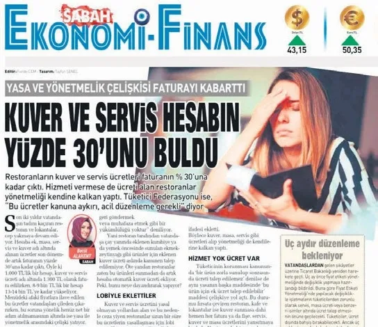 SABAH'ın 14 Ocak'ta gündeme taşıdığı kuver ve servis ücretleri, Ticaret Bakanlığı'nın yeni düzenlemesiyle son buldu. Bakanlık, resmi gazetede yayımladığı yönetmelik ile lokanta, kafe, restoran ve pastanelerin tüketicilerden ek ücret talep etmesini yasakladı. Artık bu tür işletmeler, kuver ve servis ücreti gibi adlar altında ekstra bir ücret talep edemeyecek. Faturaya keyfi olarak “servis bedeli” ekleyen işletmelere 1 milyon 439 bin liraya kadar ceza uygulanacak. Ancak, 4857 sayılı İş Kanunu'nun 51. maddesi bu uygulama için bir istisna getiriyor. İşletmeler “hizmet bedeli” alamayacak ama çalışanlara dağıtılan “yüzde” uygulaması devam edecek. Bu durum yeni bir karmaşayı da beraberinde getirecek.