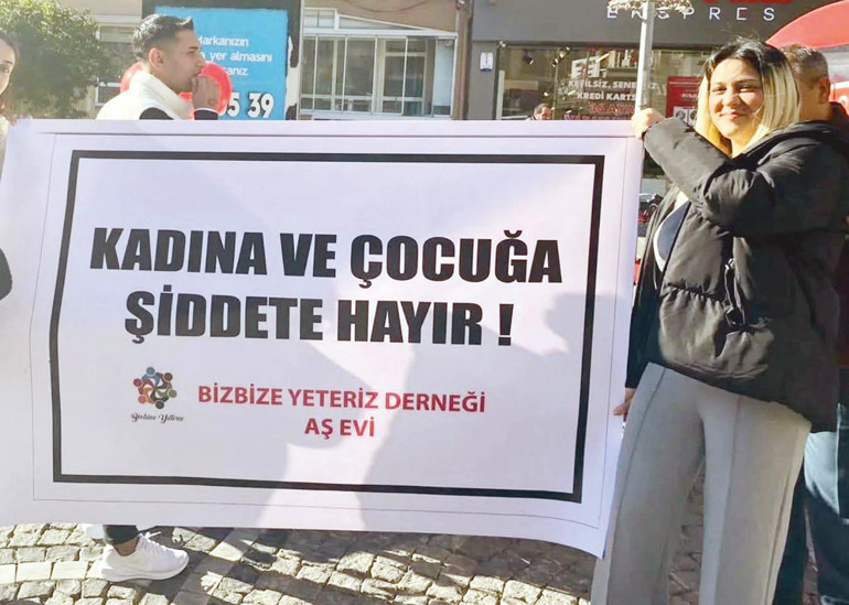 'Kadına Şiddete Hayır' Pankartı Taşıyordu