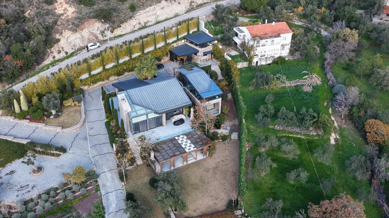 <pAyrıca, Sadettin Saran'ın Kuruoba köyündeki villasının dron ile havadan görüntüleri de alındı.