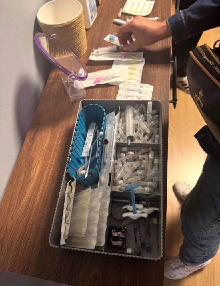 Ekiplerin gerçekleştirdiği araştırmalarda, 'merdiven altı' olarak tanımlanan ruhsatsız işletmede tıbbi uygulamalar için kullanıldığı düşünülen çok sayıda malzeme ve alet ele geçirildi. Toplanan malzemelerle ilgili tutanak tutuldu ve işletme hakkında yasal işlem başlatıldı. Ayrıca, işletme ekipler tarafından mühürlenerek faaliyetleri durduruldu.