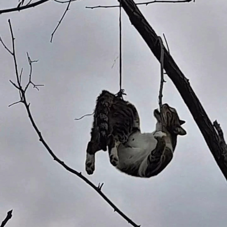 Bir kedi, dün Kerimbey Mahallesi Güneş Caddesi'nde, bir ağaçta tellerle asılı halde bulundu. Olayı fark eden mahalle sakinleri, kediyi kendi çabalarıyla ağaçtan indirdi. Kedinin ayakları ve başı ağaç dalına sıkışmıştı. Çevredeki vatandaşlar, kediyi veteriner kliniğine götürerek bakımını yaptırdı. İlk kontrollerde kedinin sağlık durumunun iyi olduğu bildirildi. Görüntülerin sosyal medyada yayılmasının ardından, pek çok hayvansever ve duyarlı vatandaş duruma büyük tepki gösterdi.