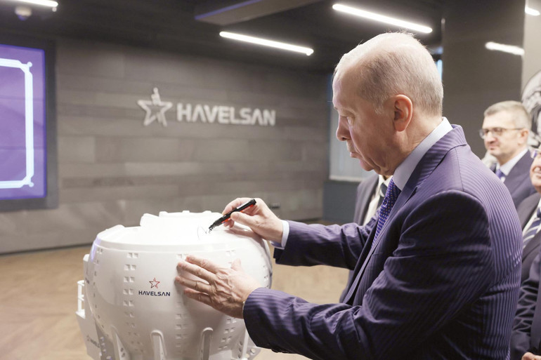 Cumhurbaşkanı Erdoğan, SANCAR SİDA töreninin ardından HAVELSAN’ın projelerini incelerken imzasını da attı.