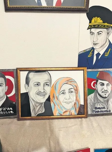 Tağıyeva, en çok etkilendiği şehidin Jandarma Komando Er Murat Akman olduğunu belirterek, “Murat Akman, şehit olmadan önce oldukça duygusal bir mektup yazmıştı. Bu durum beni derinden etkiledi. Azerbaycan'da da kimsesiz bir şehidimiz var. Bu iki şehidi yan yana resmettim. Ayrıca Başkan Erdoğan'ı, annesi Tenzile Erdoğan ile birlikte ve İlham Aliyev'i de resmettim” ifadelerini kullandı.