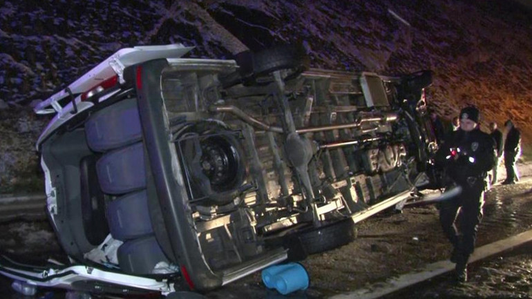 Kuzey Çevre Otoyolu Boğazköy İstiklal mevkiinde, İstanbul Havalimanı yönüne giden F.S. yönetimindeki 34 LPT 868 plakalı servis minibüsü, kar yağışı sonrası kayganlaşan yolda sürücünün kontrolünü kaybetmesi sonucu bariyerlere çarparak devrildi.