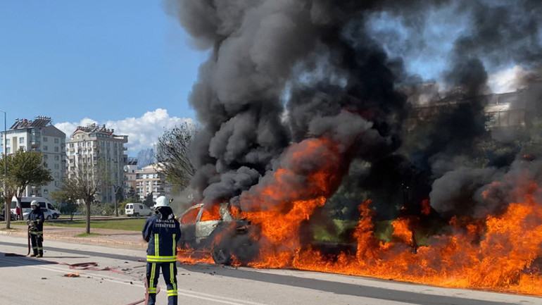 Konyaaltı ilçesi Uncalı Mahallesi Çamlık Caddesi'nde saat 11.00 sıralarında, hareket halindeki Salih Türk yönetimindeki 07 SG 189 plakalı otomobilin motor kısmından duman yükseldi. Araçtan inip kaputu açan Türk, akünün kutup başlarını söktüğü sırada bir anda otomobili alevler kapladı. Türk, veterinere götürmek için yanında bulunan Siyam cinsi kedisini, son anda kurtarıp, araçtan çıkardı. İhbarla bölgeye polis ve itfaiye ekibi sevk edildi. İtfaiyeciler alevleri söndürdü, tamamen yanan otomobil ise kullanılamaz hale geldi.
