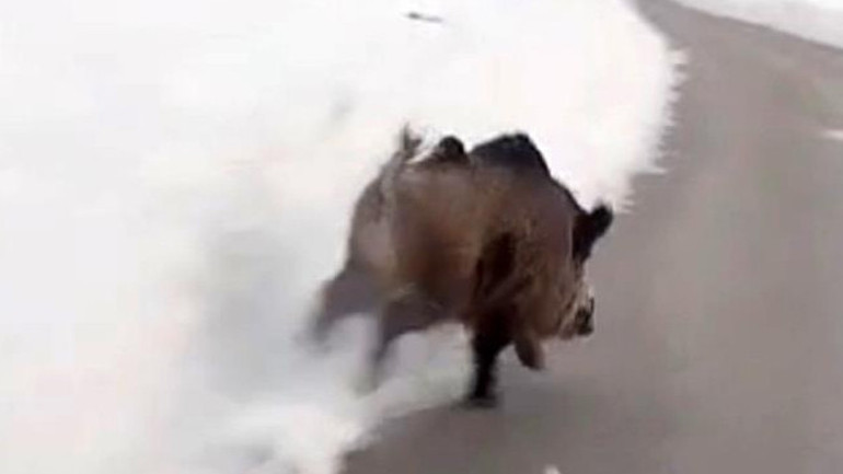 PANİKLE KAÇAN DOMUZLAR GÖRÜNTÜLENDİ