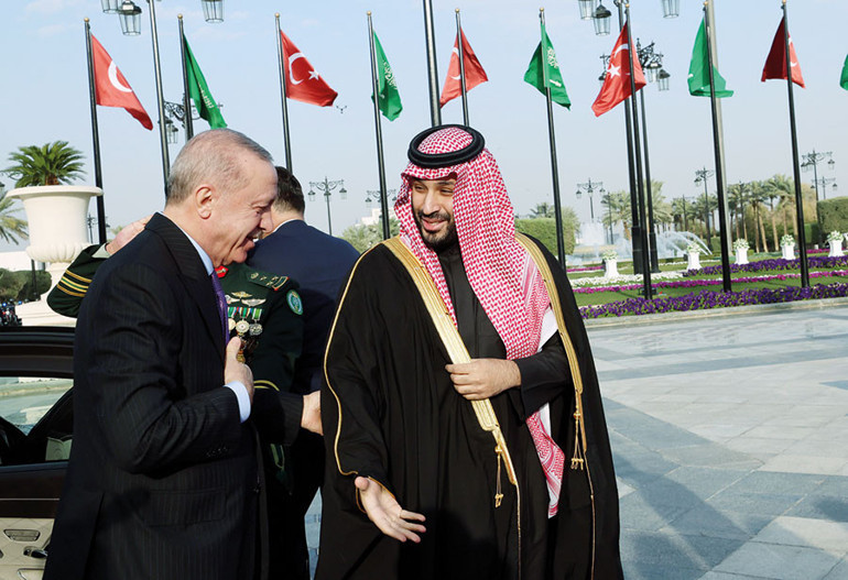 Cumhurbaşkanı Tayyip Erdoğan, Suudi Arabistan Veliaht Prensi Muhammed bin Selman’ın daveti üzerine başkent Riyad’a gitti. Erdoğan, Yemame Sarayı’nda resmi törenle karşılandıktan sonra Prens Selman ile bir araya geldi. İkili görüşmenin ardından Erdoğan ve Selman, heyetler arası toplantıya başkanlık yaptı. Toplantının ardından, onuruna verilen akşam yemeğine katılan Erdoğan, Prens Muhammed bin Selman tarafından Yemame Sarayı’nda verilen bu yemek basına kapalı olarak gerçekleştirildi.