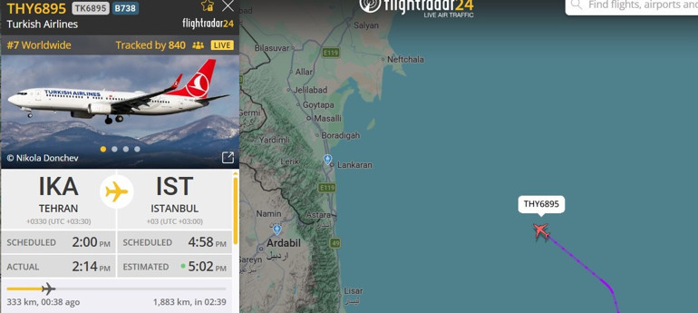 İran Hava Sahası'nın kısmen açılmasının ardından Türk Hava Yolları'nın (THY) TC-JZG kuyruk tescilli Boeing 737-800 tipi uçağı, yerel saatle 14.00’te Tahran Havalimanı’ndan kalktı.